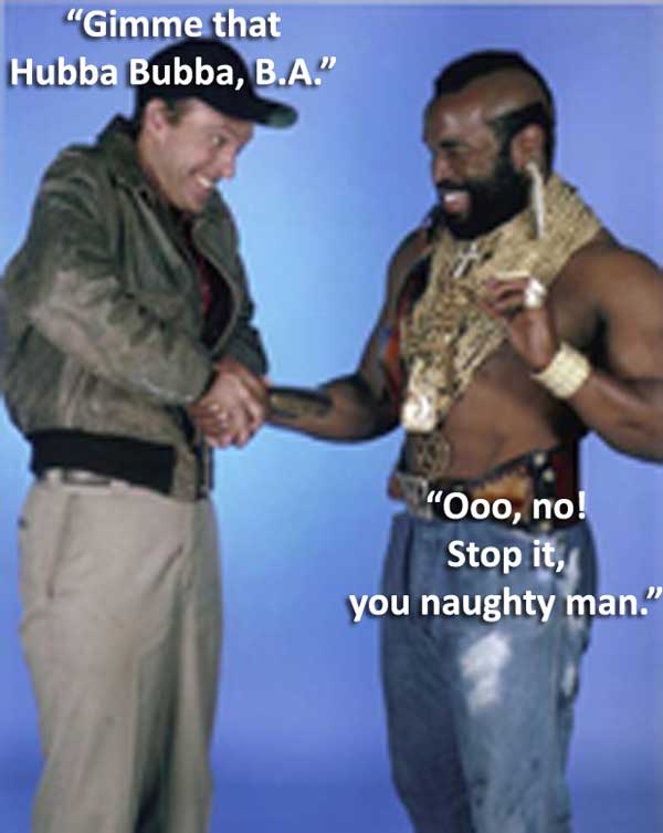 “Christ! I nearly choked on my Hubba Bubba, there!”